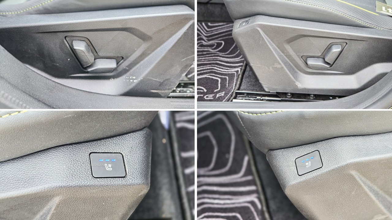 The green and black color combination also extends to the seat upholstery and we can also see some yellow piping along with yellow stitching. The dashboard features a 10.1-inch infotainment screen with Google services built-in, including Maps. Below this is a row of tactile physical buttons for dual-zone climate control and other features. Behind the steering wheel, we still get a stock media control which is very convenient.