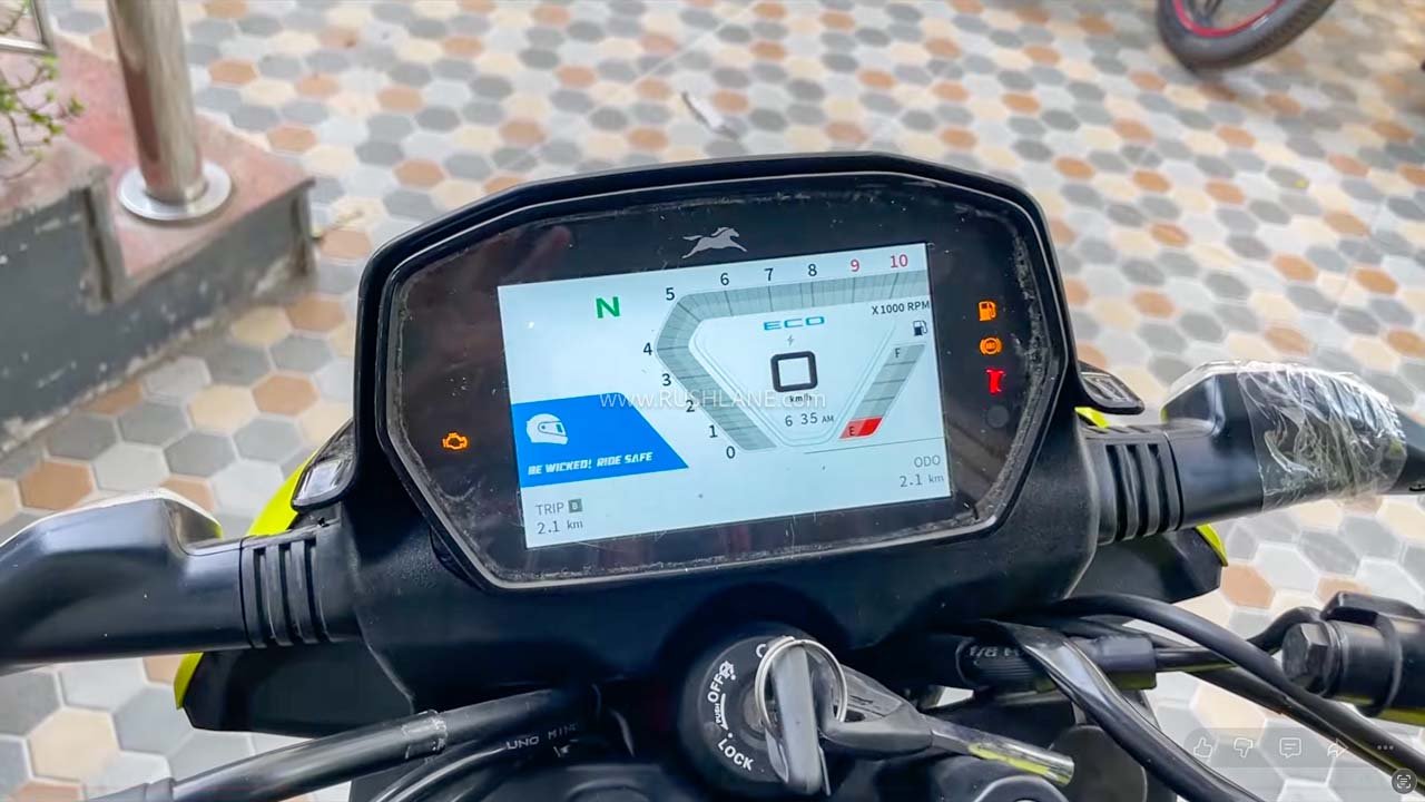 Another significant update for the top-spec TFT DD variant of the TVS Raider 125 is a full-colour TFT display. One can see a futuristic, performance-focused user interface that has high contrast and bright colors for easy readability. The UI primarily uses an orange and black color scheme, which complements the sporty profile of the bike.