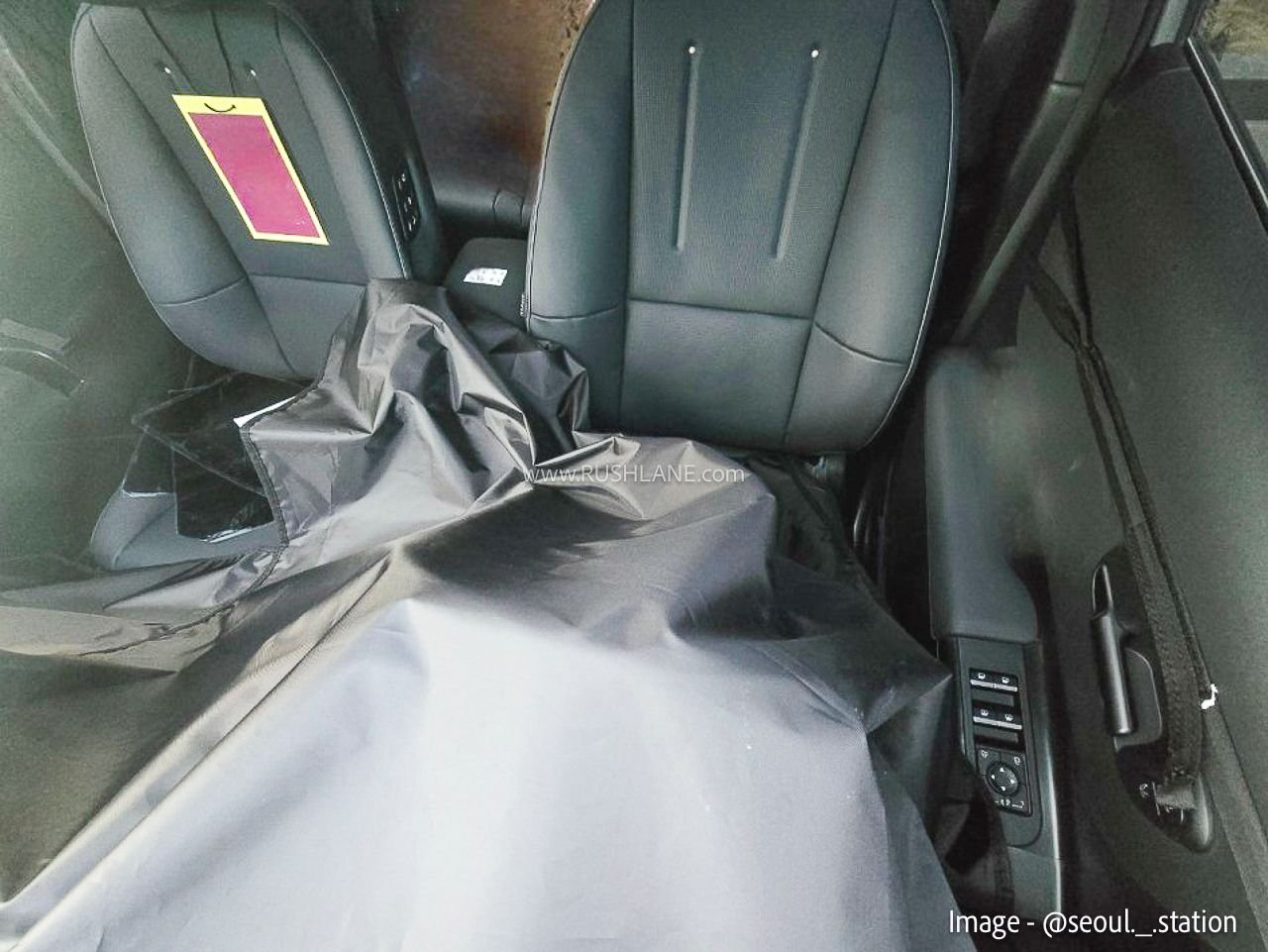 The seats themselves appear to be equipped with black leather upholstery, possibly reserved for higher variants. The overall cabin layout looks more premium with cleaner surfaces and a more horizontal design theme, in line with Hyundai’s new global models.