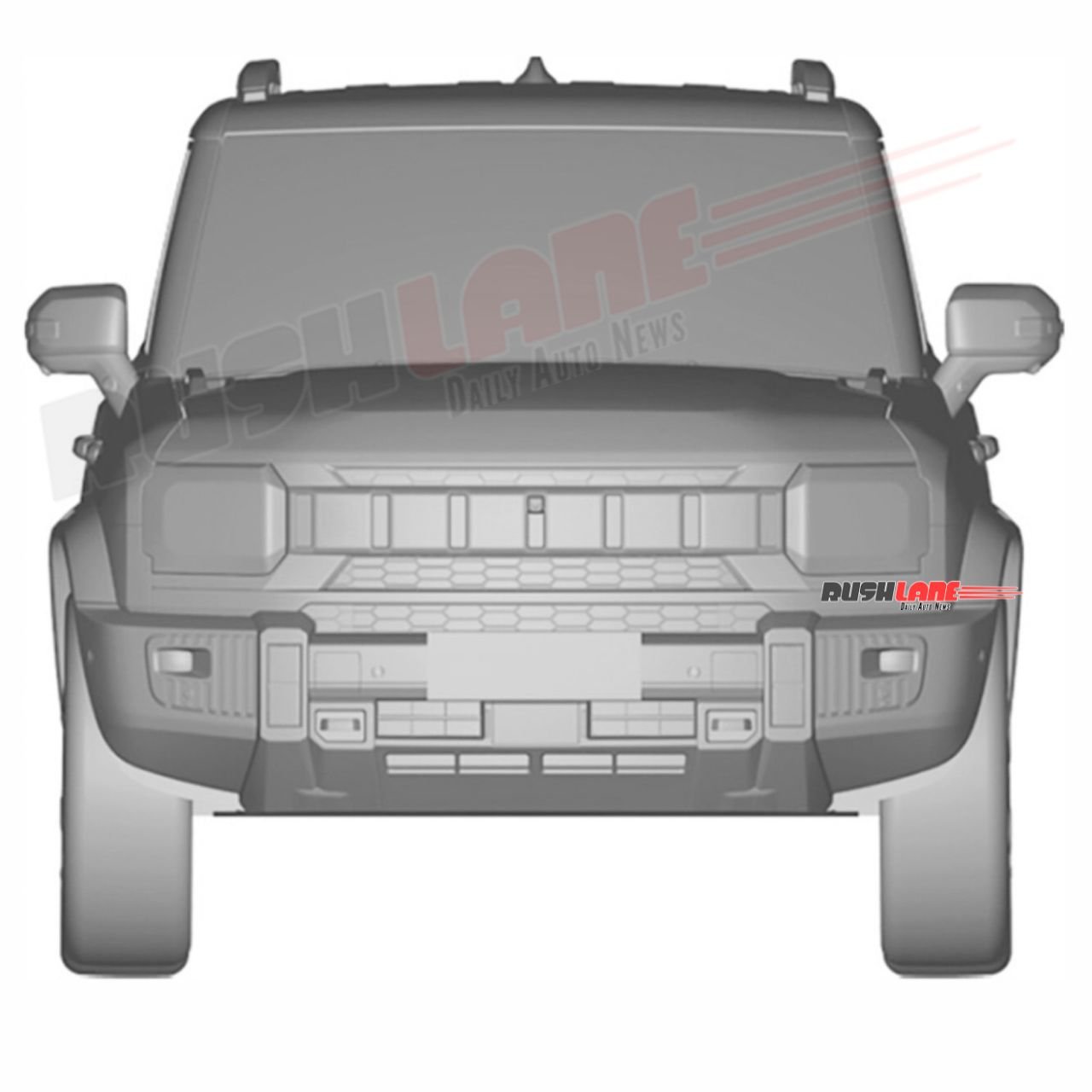 The alloy wheel design shown in the patent images looks similar to the one seen with the international-spec model. At the rear, the SUV features vertically stacked tail lamps, T2 badging, a flat tailgate and a thick bumper. The tailgate houses a spare tyre, which is fully enclosed for protection with a sturdy cover.