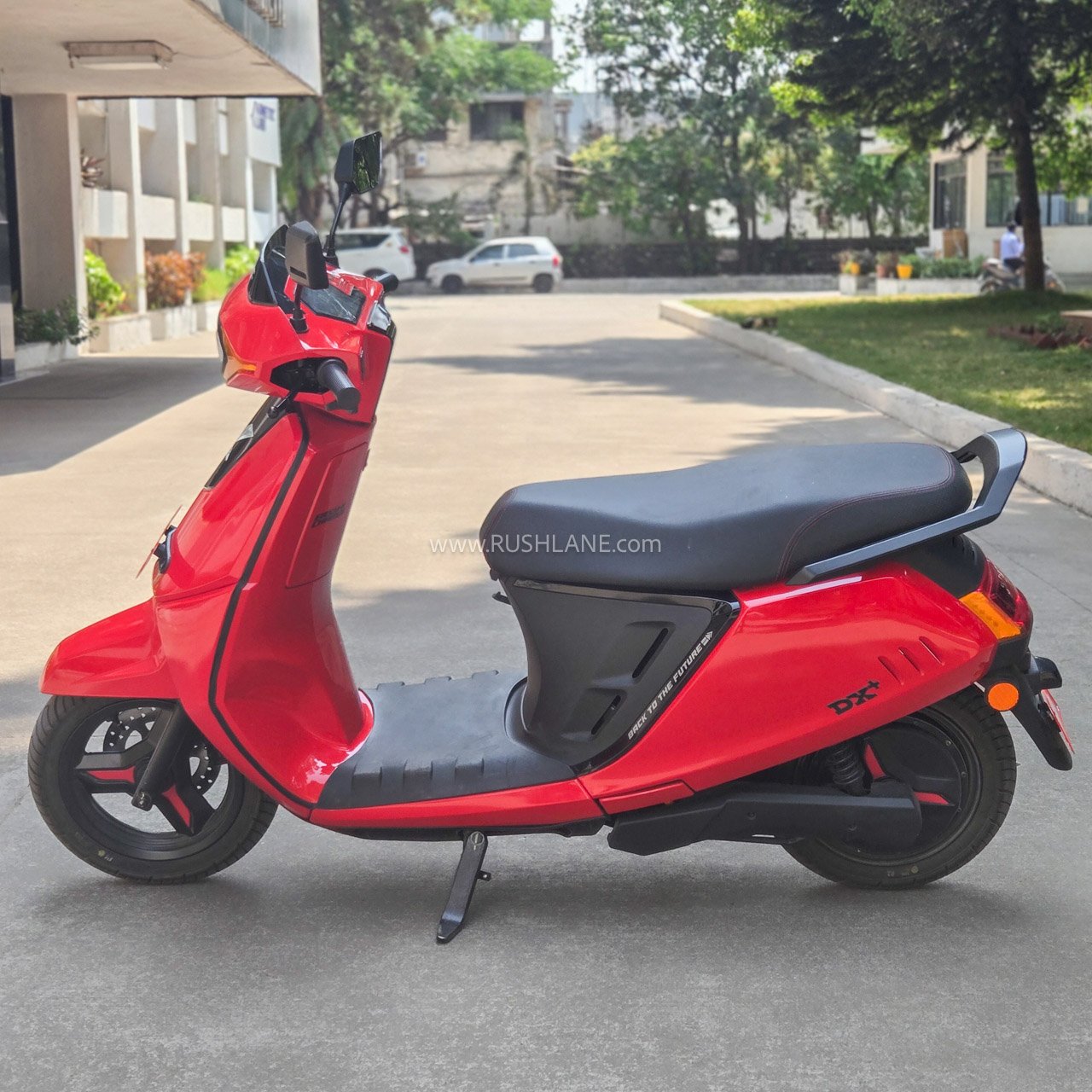 The DX Plus has five colors to choose from – red, blue, black, gray and white. The base DX only gets black and gray colours. We were particularly drawn to the white color, although red, blue and black are likely to be the more popular choices among buyers. There is a speaker next to the instrument cluster and one can also play music with the help of the Kinetic Connect app.