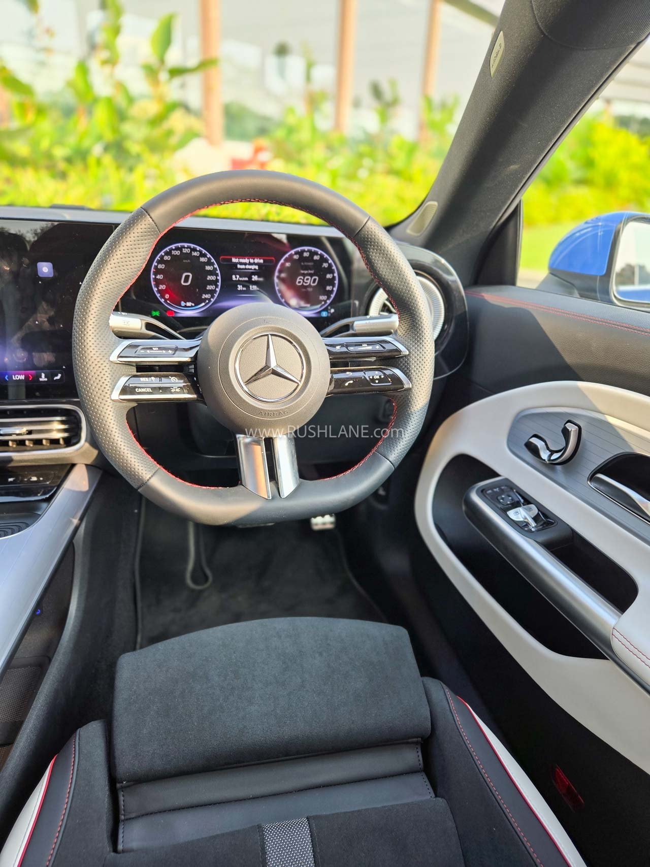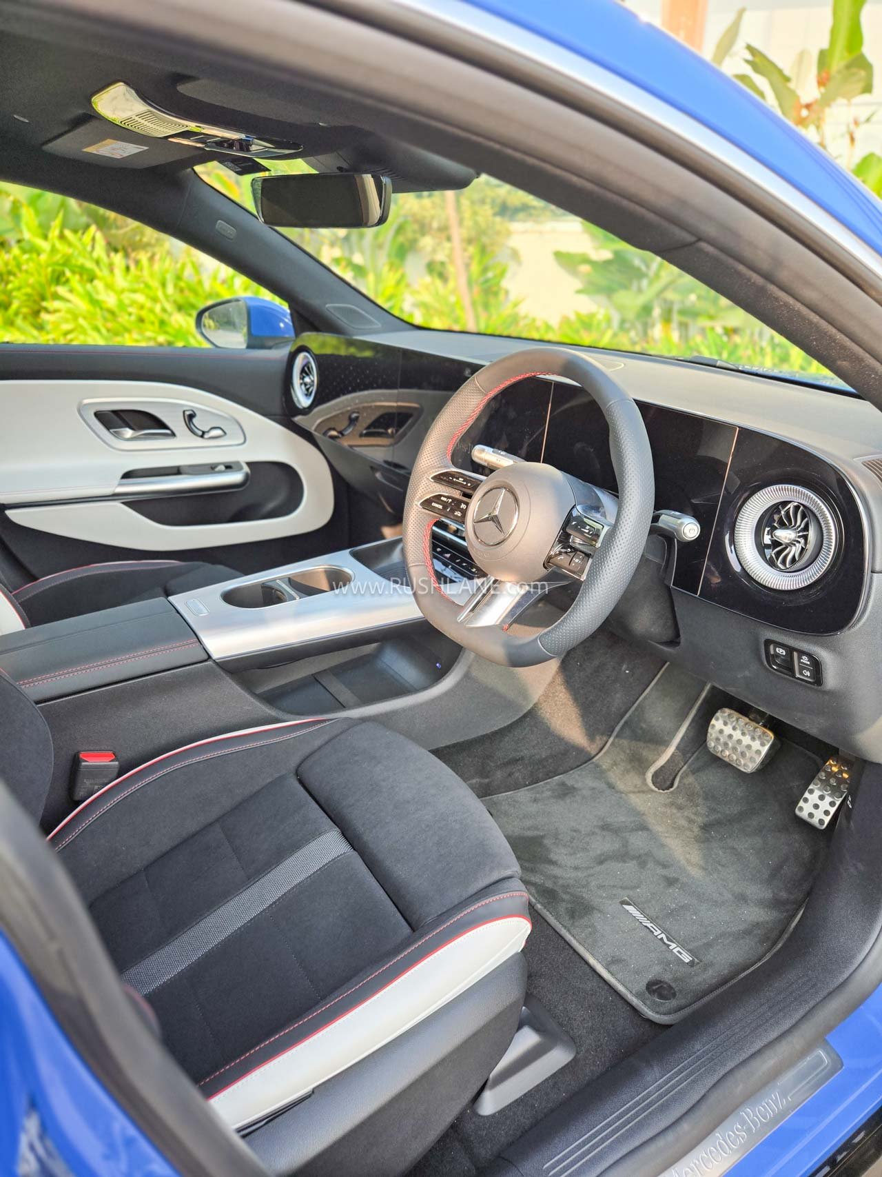 On the inside, the Mercedes-Benz CLA 250+ AMG Line features sporty AMG seats, recycled materials, plush soft-touch elements all around, AMG steering wheel, illuminated star pattern on the dash, brushed aluminum elements, floating center console, 14-inch infotainment screen with Nvidia-powered MB.OS system, 10.25-inch instrument cluster are some of the notable features.
