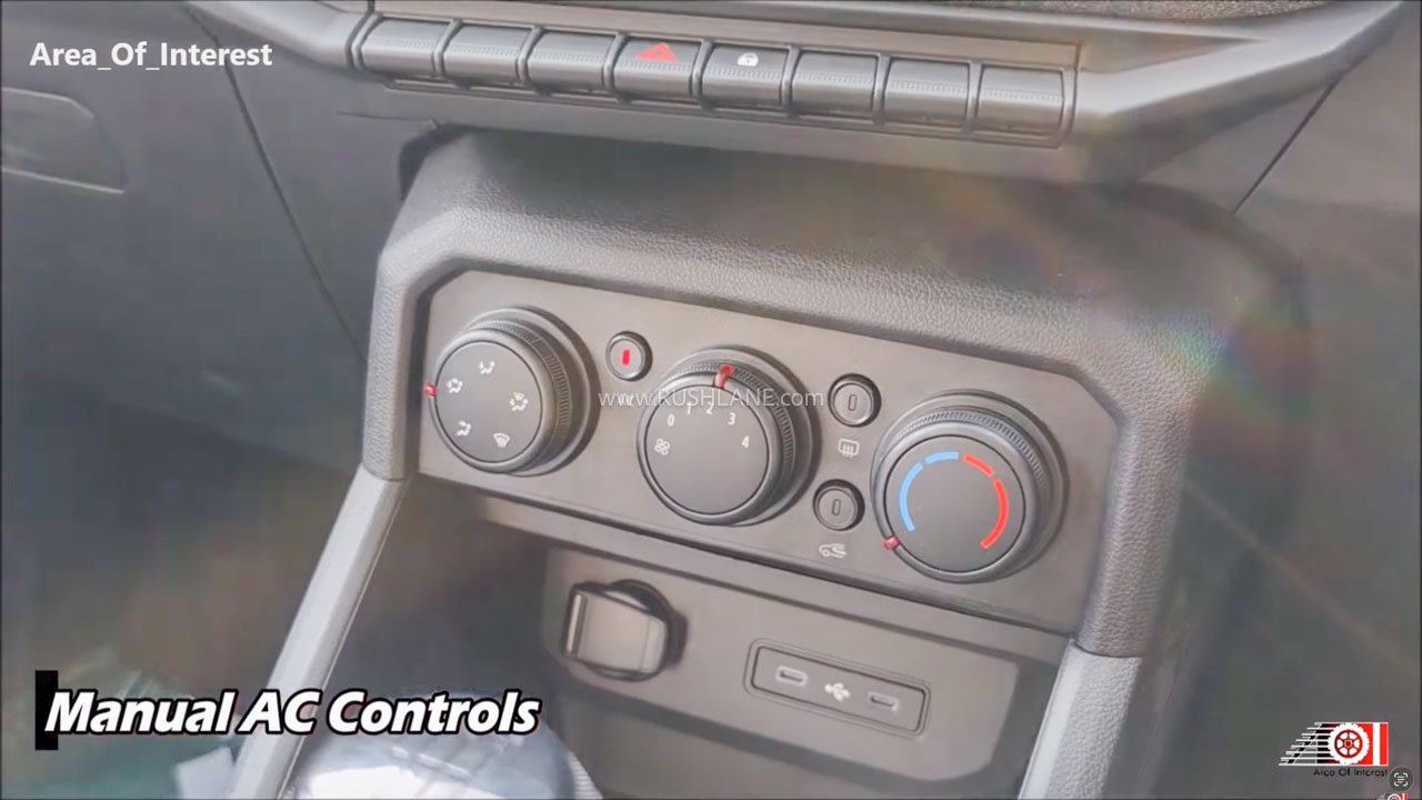The AC system on the Duster Evolution trim is completely manual. However, there are rear AC vents. Front and rear armrest, all five adjustable headrests, remote flip key, stock audio controls behind the steering wheel, manually dimming IRVM, 2 USB Type-C ports at the front and rear, rear parking camera with adaptive guidelines and rear parcel shelf are also part of the package.