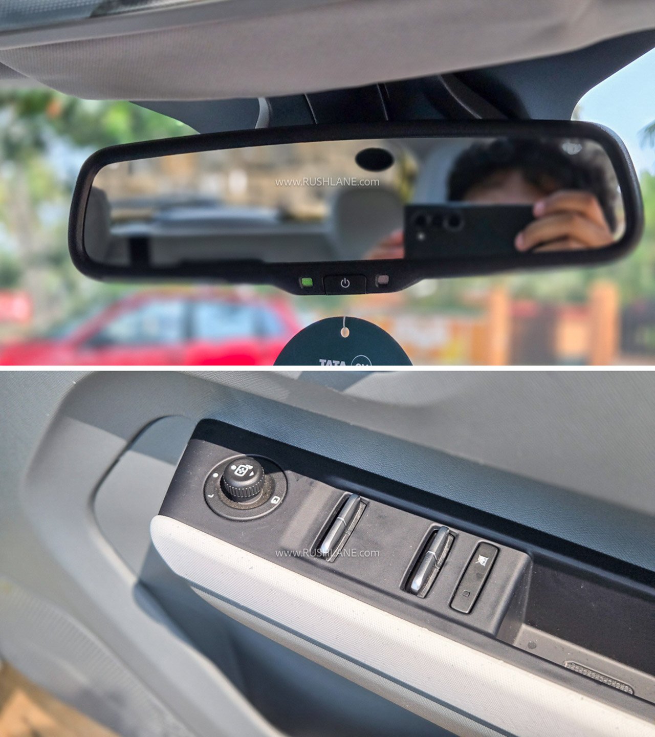The same gray color can be seen on the interior plastics, which probably isn’t a bad idea. The lighter shade makes the cabin look more airy, but brings some sportiness factor and overall contrast to the black plastic table, which is now gone. Another change with the Punch EV facelift is the removal of the rear AC vent. Tata Motors has introduced new power window switches, which debuted with the Punch EV facelift. They are sleeker and also have ORVM controls.